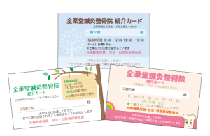 患者さんの家族や知人に接骨院の基本情報を書いたカードを手渡してもらいます。