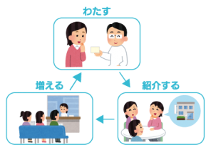 紹介した知人からも、接骨院の先生からも感謝された既存患者さんは、当然嬉しい気持ちになり、「こんなに色んな人に喜んでもらえるならまた紹介したい!」と考えるようになります。