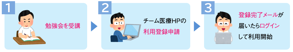 1. チーム医療を利用するためのオンライン勉強会(無料)を受講する。
