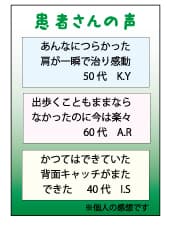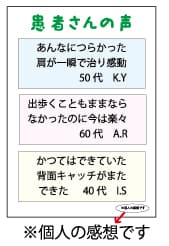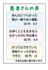 なお、現在厚生労働省で「広告ガイドライン」の策定について議論されていますが、2023年10月現在、広告の制限の対象外であるウェブサイトが、制限の対象となることが決まっています。病院、クリニック向けの「医療広告ガイドライン」では自院のウェブサイトに患者の声を掲載することが禁止されています。従いまして柔整、鍼灸、あんまマッサージの施術所ウェブサイトにも「患者の声」「口コミ」が掲載できなくなる可能性があります。