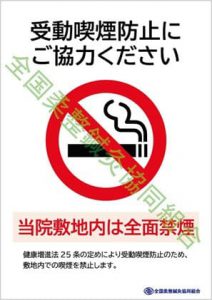 2018年7月に改正健康増進法が成立し、2019年7月1日から接骨院などの施術所は敷地内全面禁煙となっています。