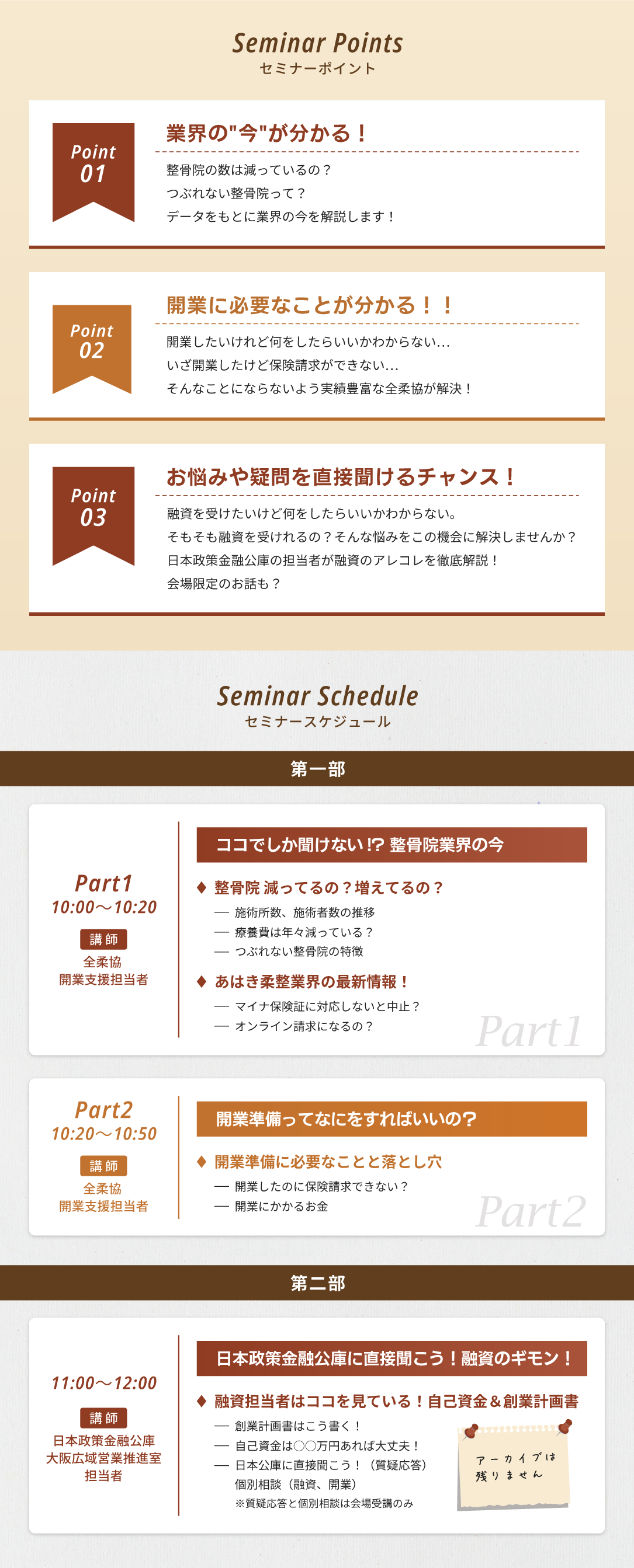 最新の業界情報を教えていただき、厳しくとも開業し、これまでしてきた勉強と会得した技術・知識をいかして接骨院を作る決意がさらに高まりました。特に内装や融資についてわかりやすく説明していただき、ありがたかったです。