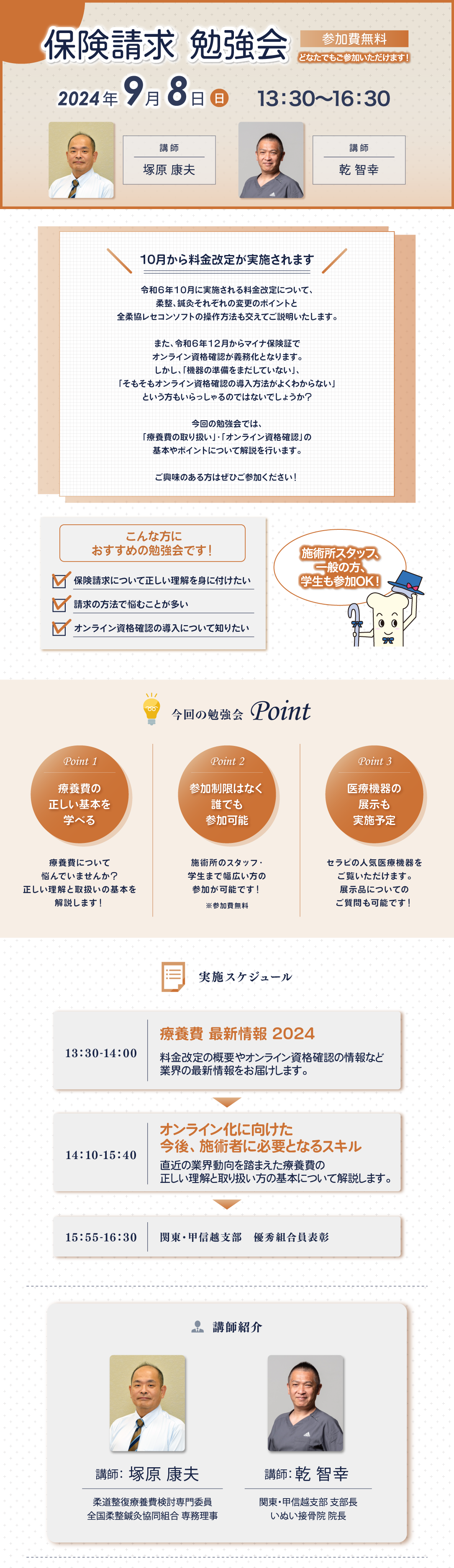 対象 組合員、施術所スタッフ、一般 学生も参加OK