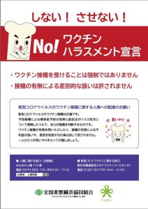 ワクチン接種の有無を問いただしたり、接種されていない方に対する不利益な扱いや差別的な扱いは許されません。