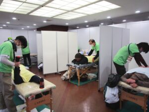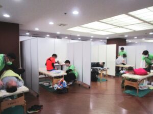 事前に、マラソンランナーへの施術に対する注意点等を共有していたこともあり、各ランナーに対して迅速で適切な施術ができました。ランナーに対して痛みの原因を丁寧に説明し、またアフターケアについてお伝えする姿が見受けられました。ランナーから多くの感謝のお言葉をいただき、柔道整復師をアピールするいい機会となりました。