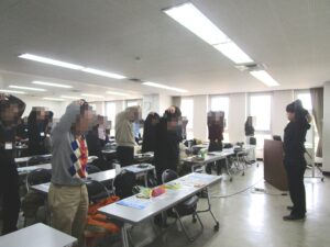 心斎橋長堀フェムテック整骨院の竹村敦基先生に講師をお務めいただき、肩や首を中心に自分で簡単にできる運動・体操を約20分間実施しました。