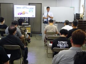 その後の「交通事故請求の基礎講座」では、トラブルを事前に防ぐための注意点や対応方法を中心に講義を行いました。どういったことが必要で、何をしなければならないのか、特に力を入れて説明を行いました。受講者も、前のめりになりながら、メモを取る姿が印象的で関心の高さを感じました。