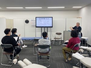 第1回目は、講師からクラニアル手技は「一次モーション」「二次モーション」「確認法」の操作原則があり、この原則を正確に理解することが大切だと伝えられました。