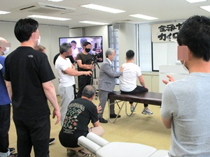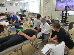 部位ごとに事例を挙げながらデモンストレーションを交えた説明が行われ、特に、一般臨床の場で施術することの多い肩関節周囲炎に対するステージの確認方法、患者への声掛けの仕方、どのように筋膜リリースを活用していくか等の具体的な内容に、受講者は興味深く聞き入っていました。