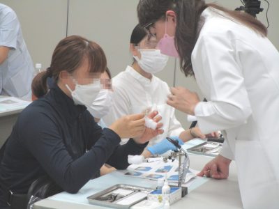 実技では、補正器具の取り付け方の説明後、受講者も実践しましたが、講師の説明がわかりやすかったため、受講者はスムーズに装着することが出来ていました。
