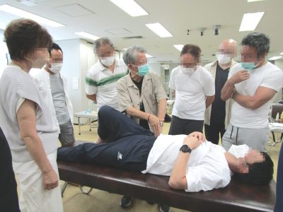 実技では講師が受講者にヒアリングを行い、肩関節や股関節の可動域の減少、背中の張りなどの症状だけでなく、油物を取りすぎたことによる食後の胃もたれを感じている方への施術も行われました。施術によって状態が改善されていく様子に驚きの声が上がりました。