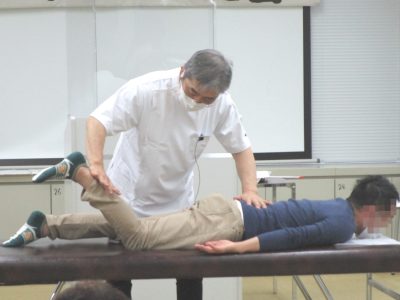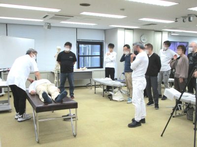 講師は終始、講義中や実技中の質問にも丁寧にしっかりと対応されており、そんな講師の様子を受けて受講者からも活発に質問が出ていました。最後には受講者ひとりひとりに講師が手技を行い、力の加減や押すタイミングを身体で覚えることができるよう指導されていました。