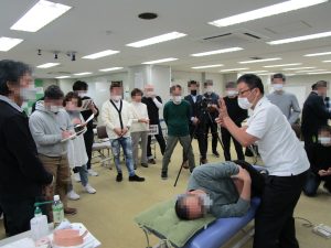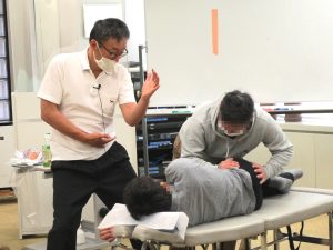 講師がこれまでに高校野球の選手や実業団の選手の治療をする際に取り入れてこられた、簡単な検査方法の紹介から始まりました。