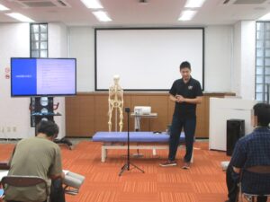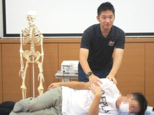 実技では受講者内で施術役と患者役をローテーションし、学んだ内容を実践できているかをそれぞれの目線で互いに評価を行いました。