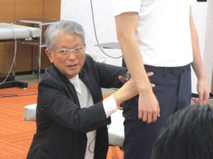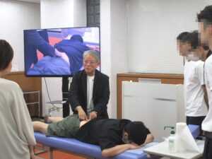 参加者は講義の内容を踏まえ実践されており、患者役と施術者役を交代しながら、熱心に情報交換をされているのが印象的でした。
