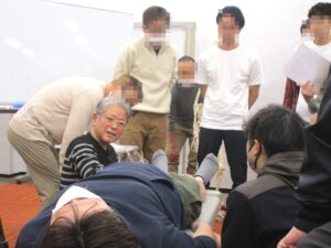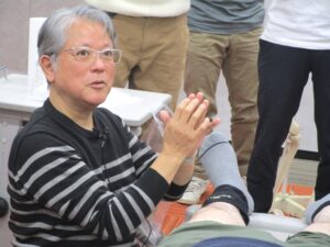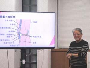 後半は膝に痛みのある受講者に対してデモンストレーションを行いました。