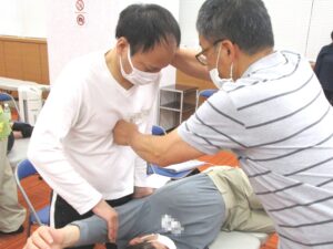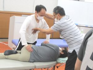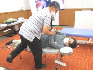 特に、前のめりになりがちな受講者には、女性患者への配慮の必要性や、「患者さんに声をかけ続けることで、患者さん自身も力が抜け、結果的に施術がしやすくなる」といった施術のポイントについてもアドバイスされていました。