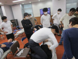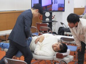 講師は体の使い方や姿勢について1組ずつ回りながら指導され、受講者は何度も繰り返しながら技術を習得しようという姿勢が感じられました。
