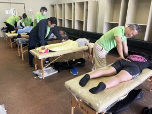 大会関係者の方からは「トレーナーの存在は選手にとって欠かせないものであり、今後も引き続きご協力をお願いしたい」とのお言葉をいただき、選手・大会・柔整師いずれも満足度の高い、医療ボランティアとなりました。