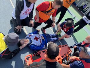 先生同士連携しながら施術を丁寧に行い、骨折などの大きなケガもなく無事に2日間の活動が終わり、大会側から感謝のお言葉をいただきました。参加者からも経験値の拡大・スキルの習得に役立つ非常に有意義な取り組みになったとのお声があり、「知識習得」「実践体験」のよい機会になりました。