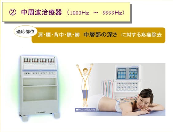 適応部位:肩・腰・背中・膝・脚など中層部の深さに対する疼痛除去