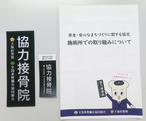 大阪府下の組合員接骨院に「安全・安心なまちづくり」に協力いただくために、下記資料をお送りしました(2021.10月末)。