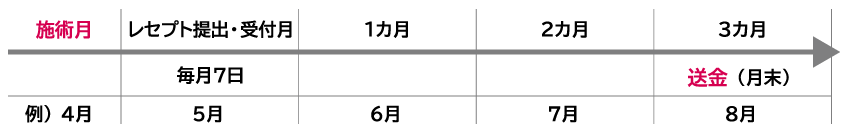 レセプト提出から3カ月後の月末最終日に保険者からの入金の有無にかかわらず、全額一括払いします。