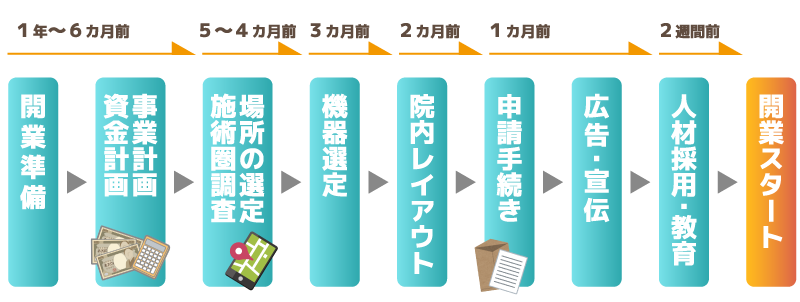 開業前に保健所に「いつごろ」「名称」「間取り(平面図持参)」を伝えて相談したり、提出書類の確認を事前にすることで届出が円滑になります。