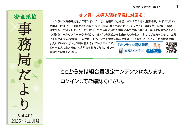 下記記事は組合員限定コンテンツです。閲覧するにはログインをしてください。◇「サポート通信vol.233」